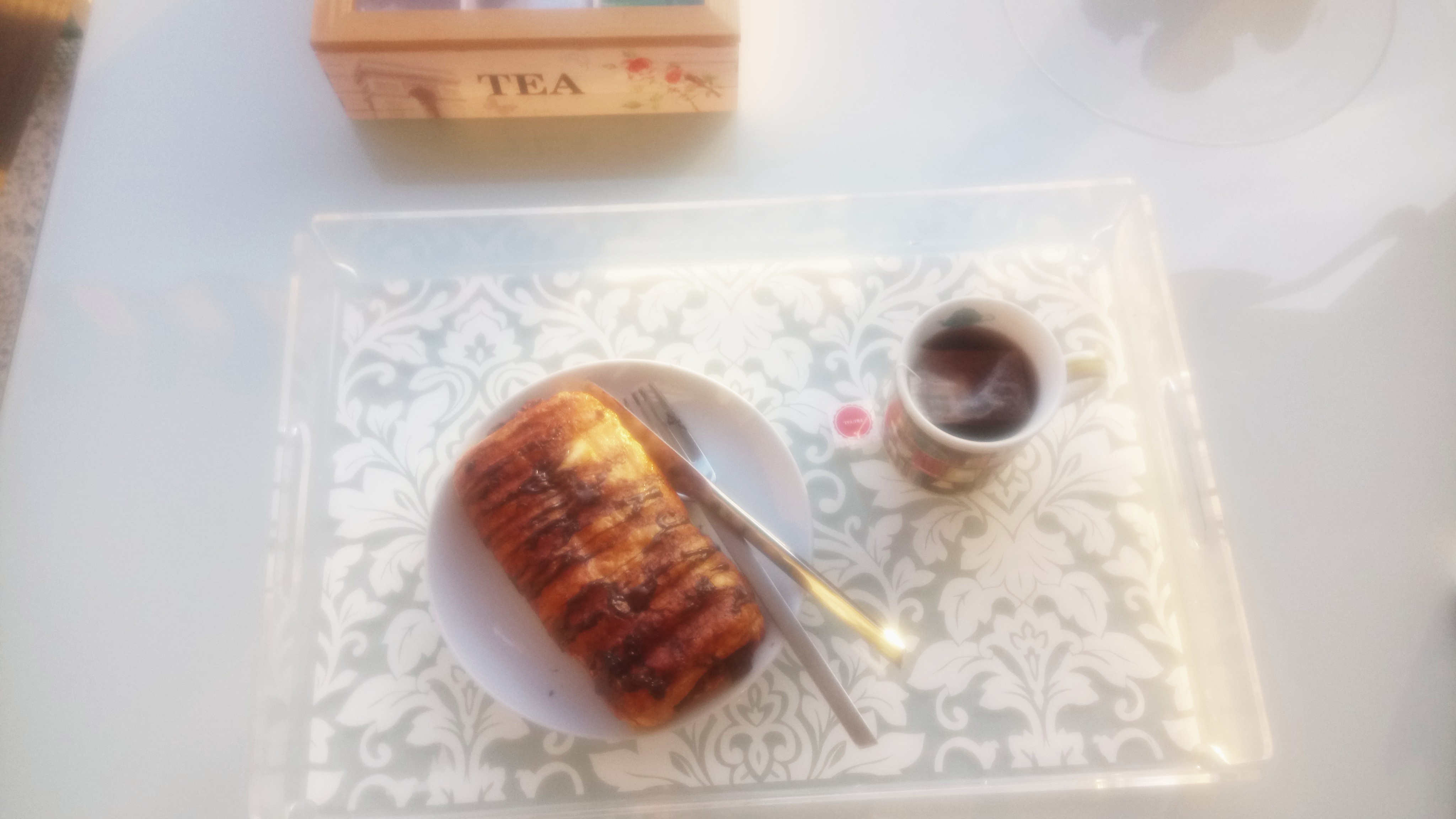 De repente se dibujó una opción súper seductora. Me compré una napolitana de chocolate y la acompañé con una rica y relajante infusión que me tomé leeeentamente, como si tuviera todo el tiempo del mundo, en mi acogedora terracita.